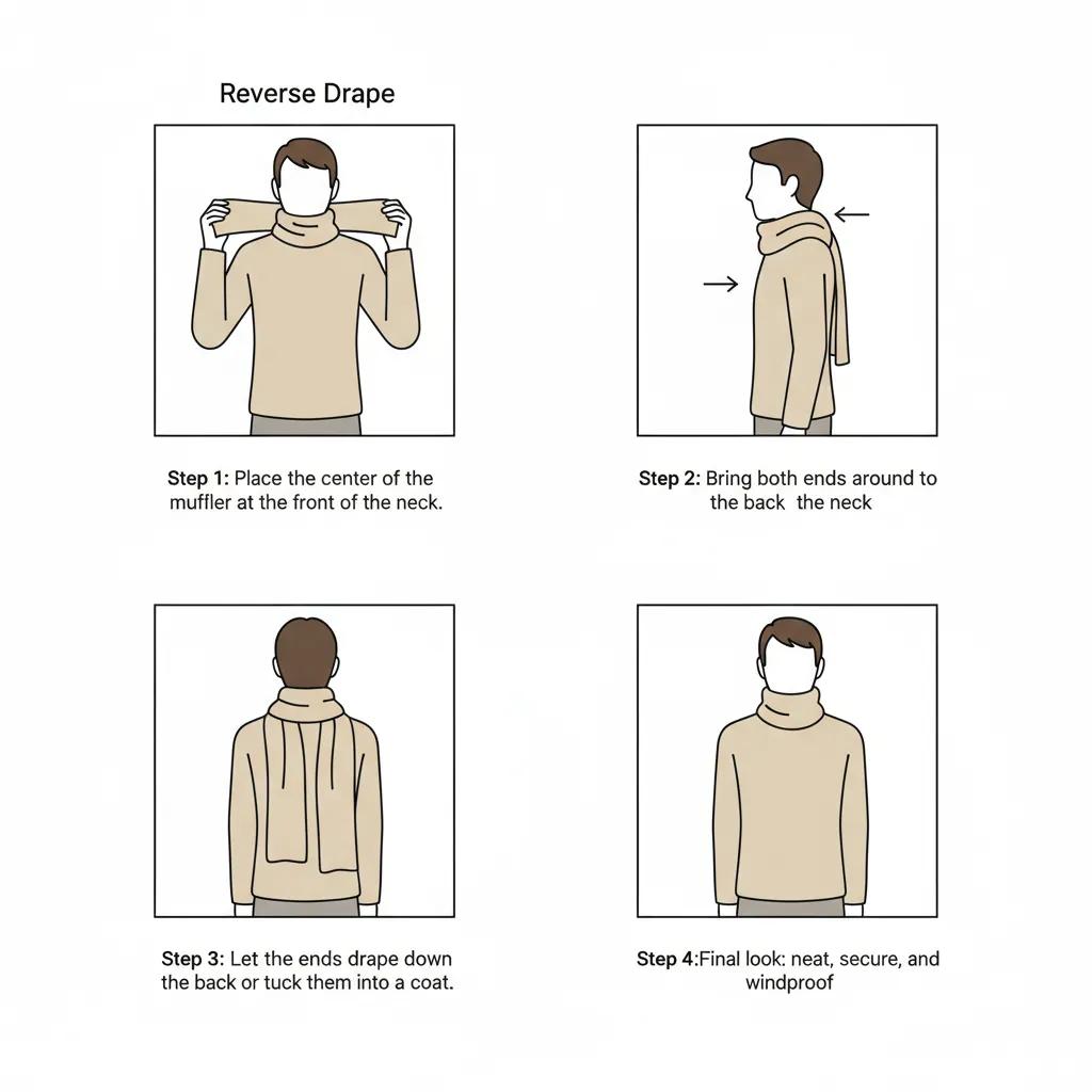 Sometimes you just need to throw on a muffler and go. The overhand knot is your fastest route to looking decent while staying warm. It’s fast, easy, and keeps you warm without overthinking your look. Perfect for rushed mornings, casual outings, or whenever you need a bit of extra neck coverage without fussing over complicated wraps.